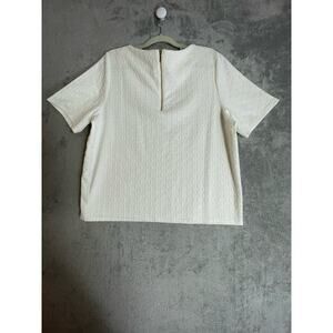 Chico's Blouse Large White Textured Back Zip Officecore Preppy Twee NWT