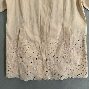 Chicos Blouse Shacket Women Sz 2 Large Linen Short Sleeve Full Zip Breathable