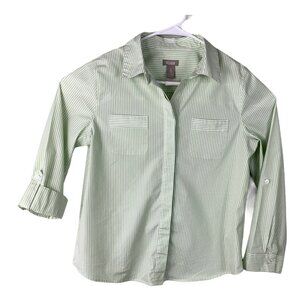 Chico's Blouse Size 1 (8) White Green Stripe