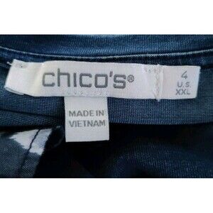 Chico's Blouse Size 4 US XXL Indigo Ikat Print Sleeve Blue