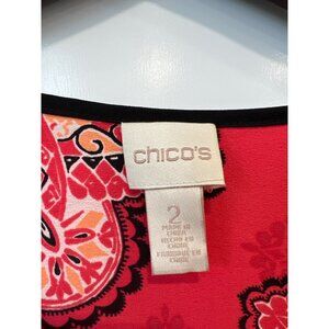 Chicos Blouse Size 2 Floral Mandala Cold Shoulder Bell Sleeve Red Black Bohemian