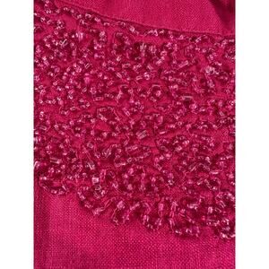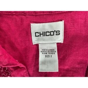 Item: Chicos Blouse Top Size 2 or Large Pink Fuchsia 100% Linen Beaded Collar Chest