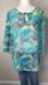 Blue green Sz 12 ruffle sleeve semi sheer tropical palm print blouse by Chico’s