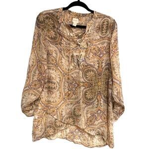 Chico's Blouse Women's Size Small Multicolor Asymmetrical Long Sleeves Tunic Top