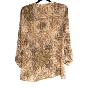 Chico's Blouse Women Small Multicolor Asymmetrical Roll Tab Sleeves Tunic Top
