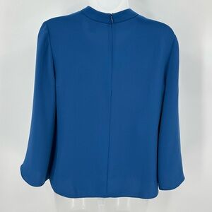 Chicos Blouse Womens 0 Petite US 4/6P Blue Bell Sleeve Cutout Neck Zip Flowy Top