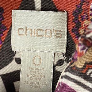 Chicos Blouse Womens 0 US S Scarf Print Collared Geometric Bell Sleeves Popover