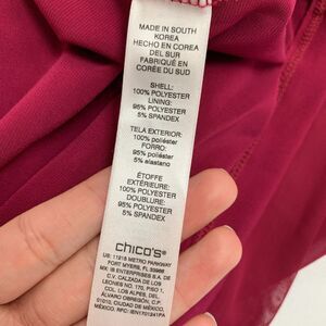 CHICOS BLOUSE WOMENS 0 WINE BERRY LAYERED V NECK OVERLAY QUARTER WIDE SLEEVE
