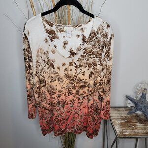 Chico's 3/4 Sleeve V Neck Floral Blouse