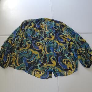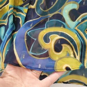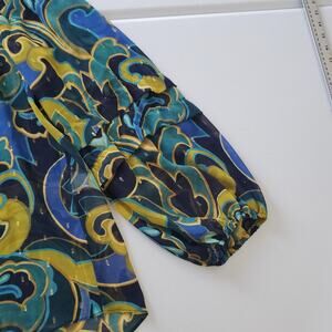 Chico's Blouse Womens 20 Blue Green Metallic Ruffle Neck Puff Sleeve Sheer Boho