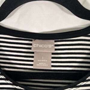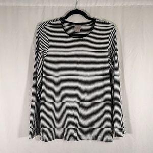 Chico's Blouse Women's Medium Black White Striped Long Sleeve Round Neck