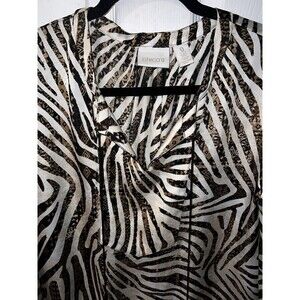 Chicos Blouse Womens Petite 0 Sz PS Top Brown Animal Zebra Tassel Shirt Mobwife