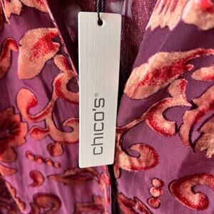 Chicos Blouse Womens Size 1 / US 8 Floral Velvet Burnout Button Down Blouson