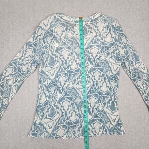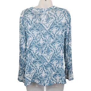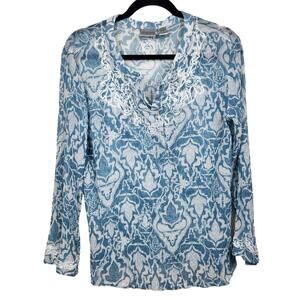 Chico's Blouse Womens Size 1 US M/8 Blue White Silk Embroidery Trim Sheer