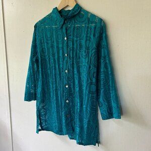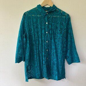 Chicos Blouse Womens Size 8 Blue Nearly Sheer Collared Button Front Chicos 1 Top