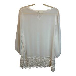 Chicos Blouse Women's Size Large Lightweight Embroidered Sheer White Chicos 2