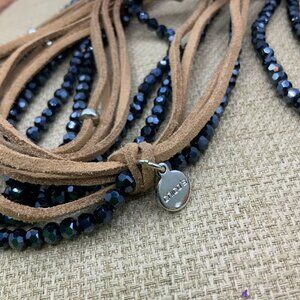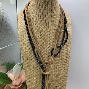 Chico's Blue AB Beaded Suede Cord Boho Multi Strands Lariat Adjustable Necklace