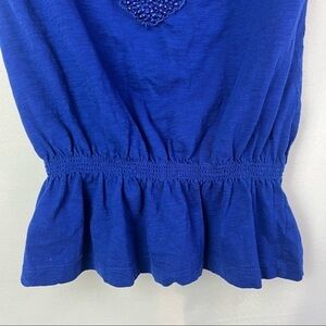 Chico's Blue Beaded Smocked Peplum Cotton Short Sleeve 00
