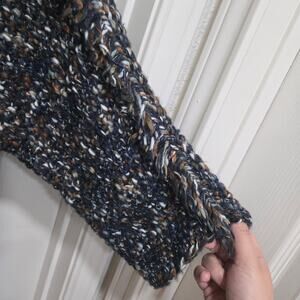 Chico’s Blue Black Gold Fringe Knit Open Front Sweater Size 2