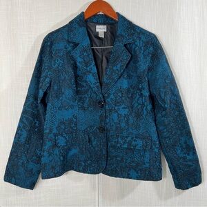 Chicos Blue Black Lace Decorative Buttons Blazer Jacket