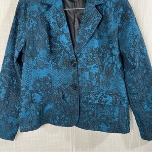 Chicos Blue Black Lace Decorative Buttons Blazer Jacket Size 1