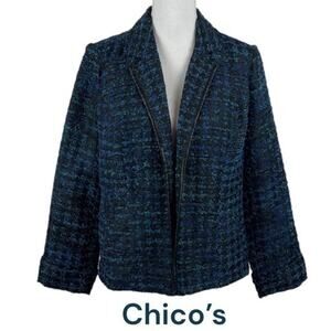 Chico’s Blue & Black Textured Tweed Academia Jacket Blazer NWOT Size 8