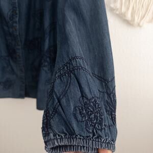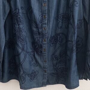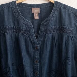 Chico’s Blue Boho Embroidered Casual Button Down Shirt