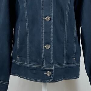Chico’s Blue Boho Hippie Festival Paneled Jean Jacket NWOT Size 12