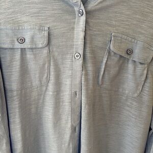 Chico's Blue Button Front 2 Front Pockets Shirt Size 2