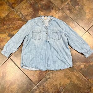 Chico's Blue Denim-Style Long Sleeve Tunic Grommet Collar 4 20/22. Measurements in photos. In good, pre-loved (used) condition.