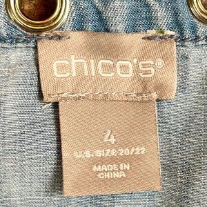 Chico's Blue Denim-Style Long Sleeve Tunic Grommet Collar 4 20/22