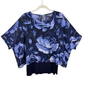 Chico's Blue Floral Dolman Short Sleeve Oversized Built In Tank Blouse Size L