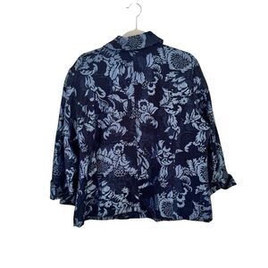 Chicos Blue Floral Embroidered Blazer Jacket Office Boho Preppy Womens 3 US XL