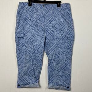 Chico's Blue Floral Patterned Cuff Cargo Crop Pants Size 16