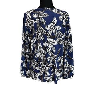 Chico's Blue Floral V Neck Sweater US Size XL Chico's Size 3 Relaxed Fit