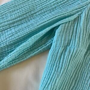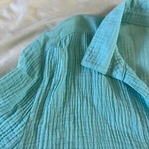 Chicos Blue Gauzy Cotton Collared Blouse Sz 2 / L Casual Preppy Cruise Vacation