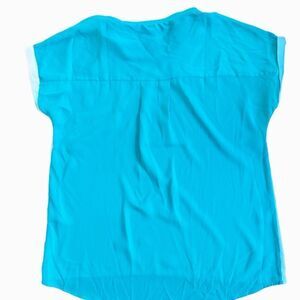 Light and flowy ocean blue gradient shirt with short sleeves. Perfect for casual wear.