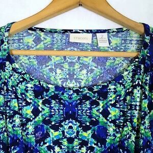 Chico's Blue Green 3/4 Sleeve Crossover Layered Front Blouse Size Large