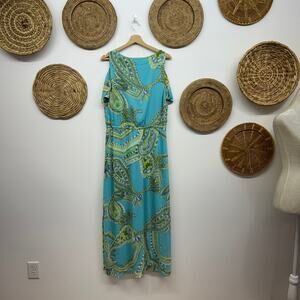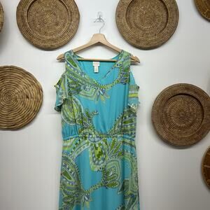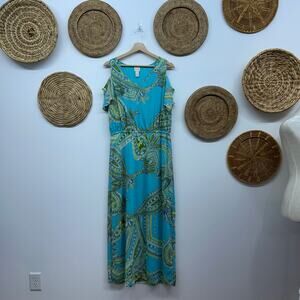 Chico's Blue Green Short Sleeve Cold Shoulder Long Maxi Dress Vacation Medium/8