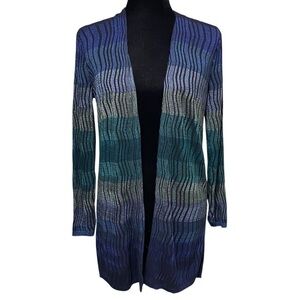 Chicos Blue Green Striped Open Front Cardigan Sweater Jacket Size 0
