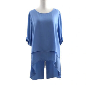 Chico's Blue Kathy Layered Top Womens 1 Medium Split Back Blouse