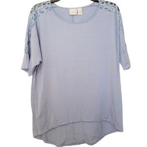 Chico's Blue Lace Panel High Low Oversized Blouse Size 1/Medium