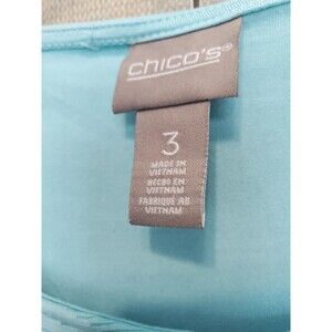 This is a Chico's Blue Mesh Burnout Overlay Cap Sleeve Knit Tunic Size 3 (XL)