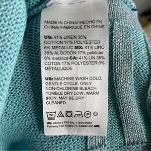 Chico’s Blue Metallic Silver Short Sleeve Knit Blouse