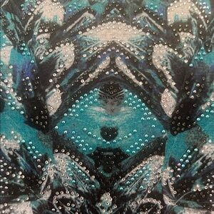 Stylish blue patterned women's top with a unique design. Perfect for casual outings or a night out.( pit2pit 19 1/2’ length 25’ Approximately)
