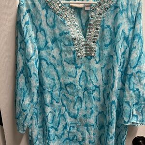 Chicos Blue Patterned Women's Top size XL/ NWOT # 410