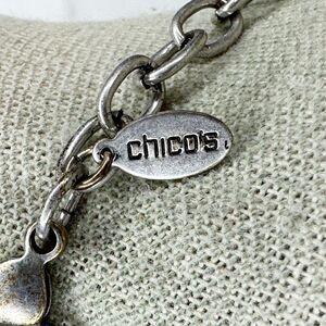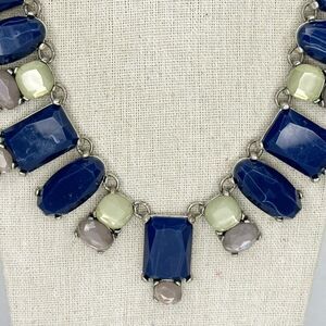 Chicos Blue Rhinestone Crystal Bib Statement Silver Tone Necklace ✨