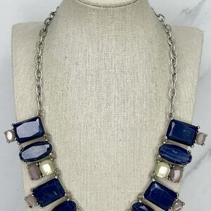 Absolutely stunning Chico's statement necklace that's guaranteed to turn heads! The gorgeous sapphire blue rhinestones and crystals in mixed shapes create such a luxurious, elegant look. This piece is perfect for special occasions, date nights, or whenever you want to feel absolutely glamorous!