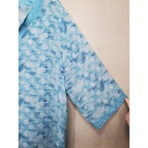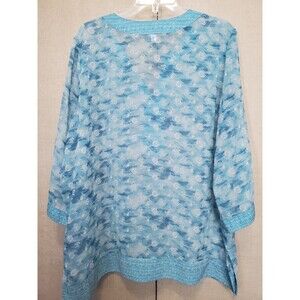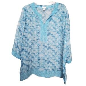 Chico's Blue Sheer Chiffon Geo Print Split Neck 3/4 Sleeve Tunic Size 3 (XL)