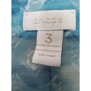 This is a Chico's Blue Sheer Chiffon Geo Print Split Neck 3/4 Sleeve Tunic Size 3 (XL)